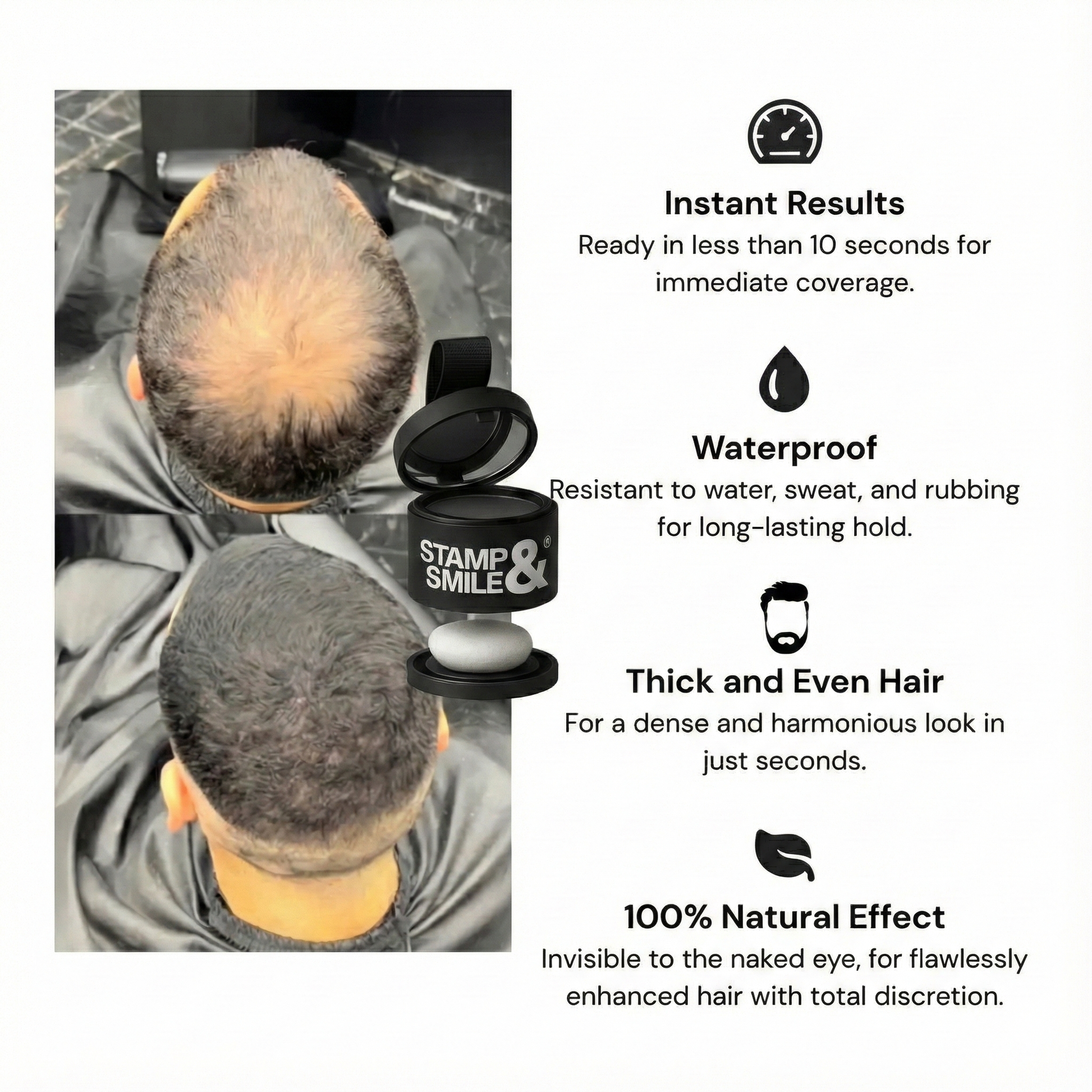 Conceals bald spots, thinning areas, and patchy hairlines in seconds